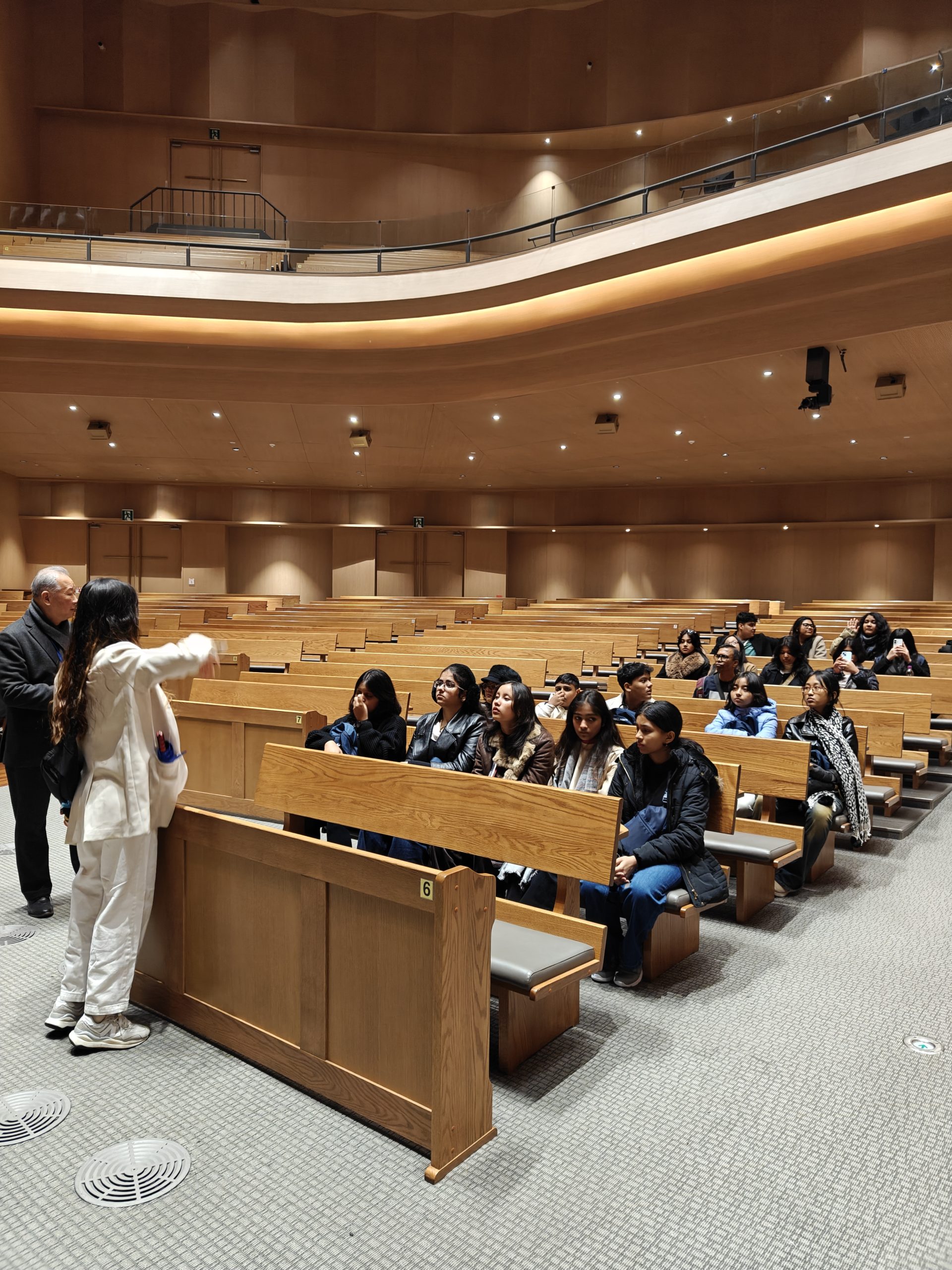 Students wandered through exhibition areas, tracing vertical connections that guide movement the way a river guides water: not by force, but by invitation. The lesson arrived without announcement: spaces are not static containers. They are dynamic environments. A room isn’t a box you stand inside — it’s a condition you inhabit, one that either opens thinking or closes it.